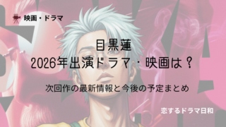 ドラマ 目黒蓮の2026年出演ドラマ・映画は?次回作の最新情報と今後の予定まとめ 目黒蓮の2026年出演ドラマ・映画はある?最新情報と今後の予定、次に来そうな作品ジャンルをまとめました。 2025.12.17 ドラマ映画