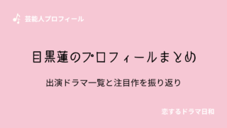 芸能人プロフィール 目黒蓮のプロフィールまとめ|出演ドラマ一覧と注目作を振り返り 目黒蓮のプロフィールと出演ドラマ・映画をまとめました。代表作や俳優として評価される理由、最新出演情報まで分かりやすく解説します。 2025.12.16 芸能人プロフィール