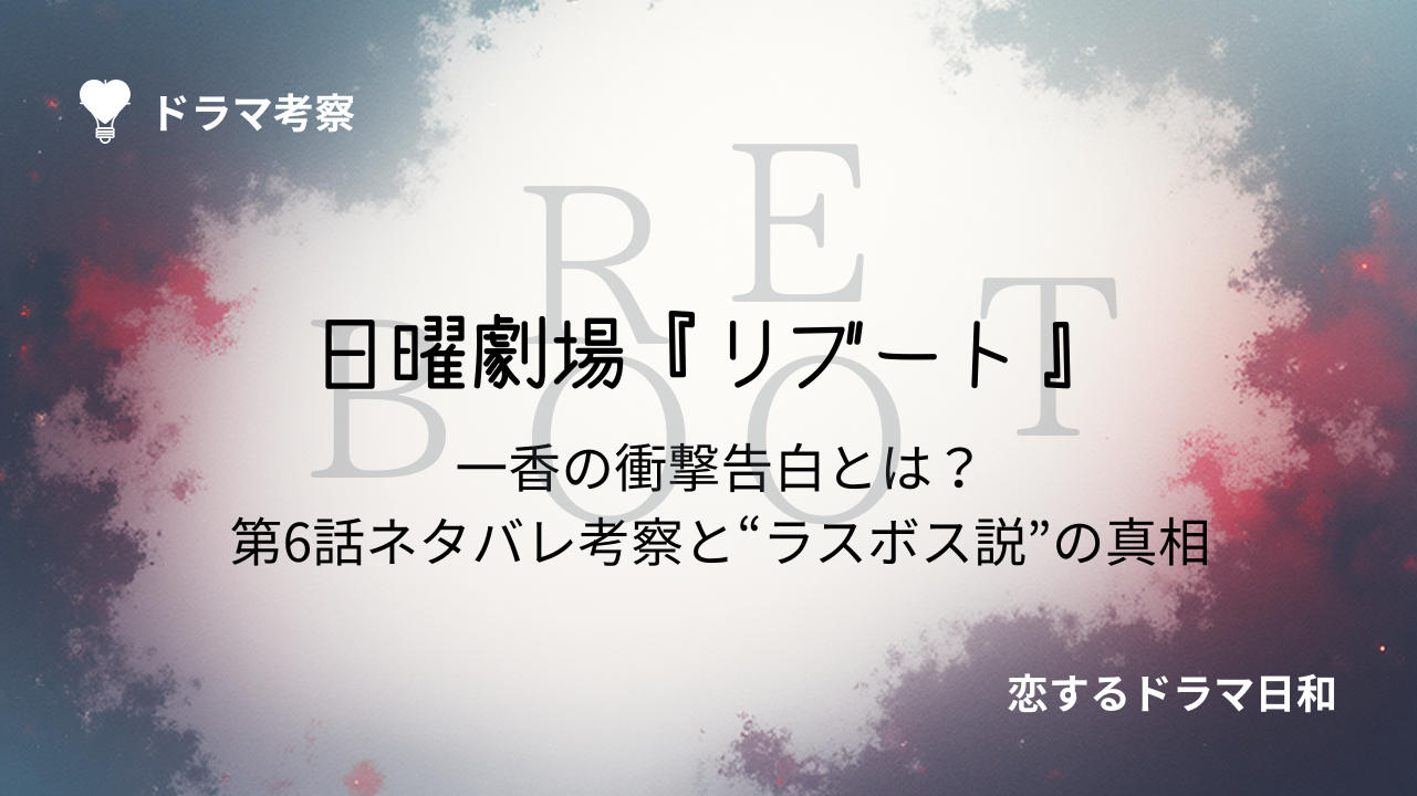 『リブート』第6話での一香の衝撃告白は、物語の方向性を大きく揺るがす展開でした。