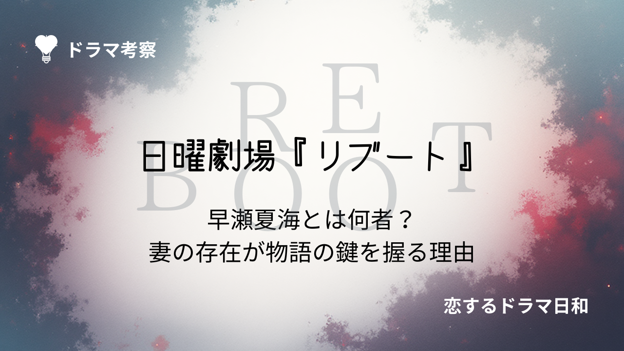 日曜劇場リブートで、物語の中心にいながら、ほとんど姿を見せない人物が早瀬夏海です。