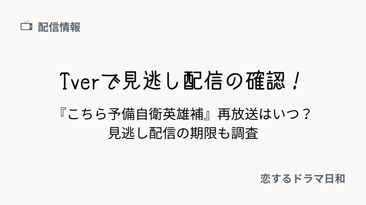 『こちら予備自衛英雄補』は、現時点では再放送の予定は出ていませんが、TVerなどの見逃し配信を利用すれば、放送後でも視聴できる可能性があります。