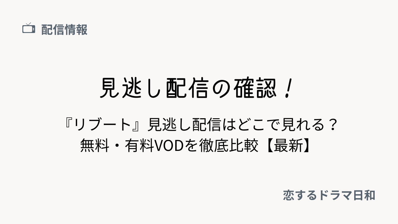 この記事では、ドラマ『リブート』の見逃し配信がどこで見れるのかを中心に、無料で見られるサービスと有料VODの違い、ドラマ好きさんにおすすめの視聴方法を分かりやすくまとめました。